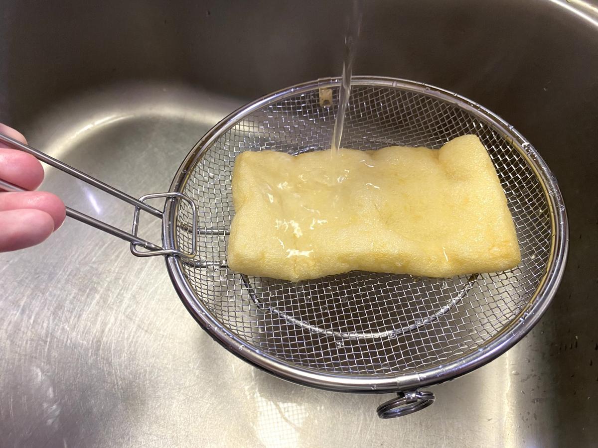 「すっきり暮らす盆ざる」は、油揚げの油抜きにもぴったりでした。