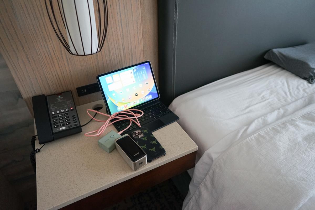 しかし、この2つを取り入れるようになり、それぞれのアダプタや充電器が必要なくなり、荷物の軽量化に成功。時間があるときは、充電しながらベッドに横になってiPadで動画を見ることもでき、家以上に快適なホテルライフを過ごしています。