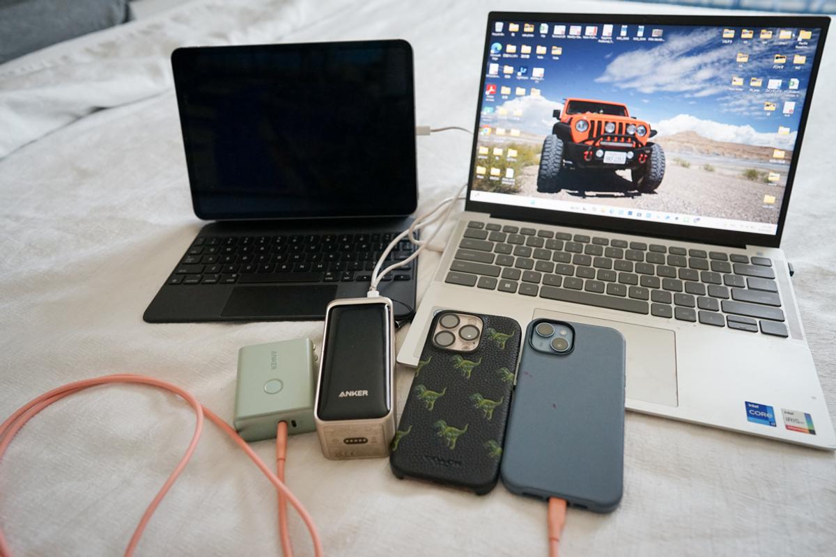 今まではそれぞれのガジェットの電源アダプタ、ケーブル。それにプラスしてモバイルバッテリーを持って行っていたため、ガジェット用の充電器やケーブルが重くかさばっていました。