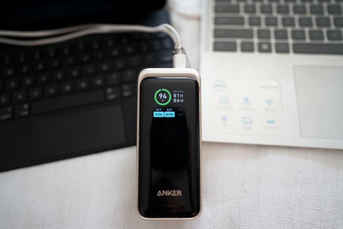 その充電器を持って行くのが嫌だったのですが、「Anker Prime Power Bank」は最大出力が65Wのモバイルバッテリー。