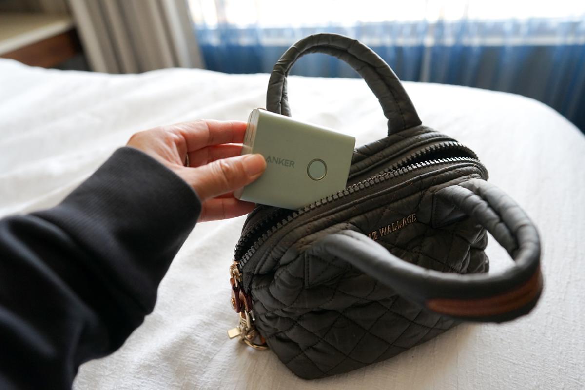 小さなバッグにも入る手のひらサイズで、外出時はスマートフォンのモバイルバッテリーとして愛用。