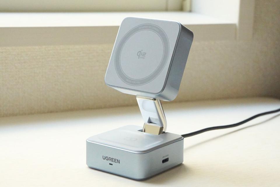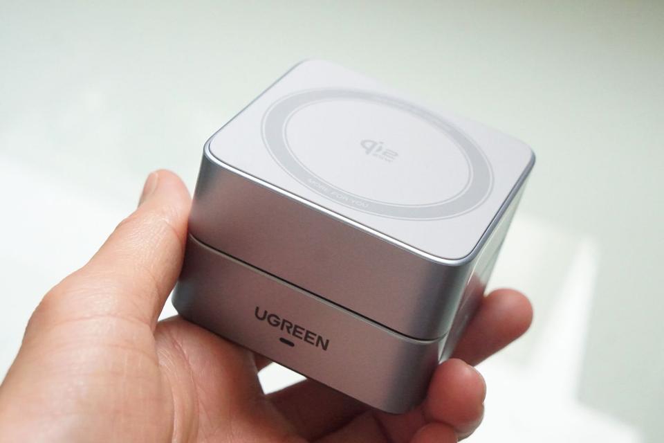 UGREENらしいメタリックな質感がかっこいい「MagFlow 25W Qi2 ワイヤレス充電器」。