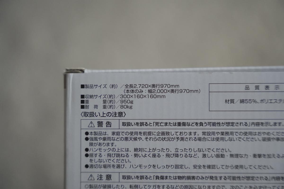 子供も大人も大好きなハンモックですが、重量制限が80kgとなっているので、事前に確認しておいた方が吉。