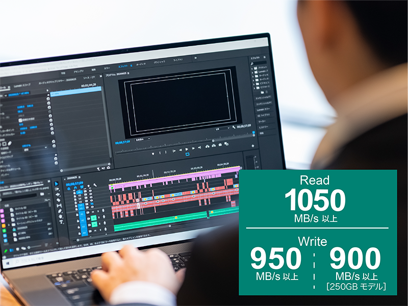 読込速度1,050MB/s以上の高速転送!