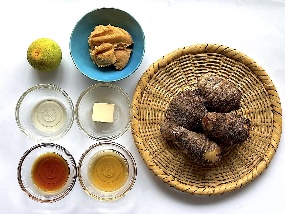 今回はこの里芋を薄めの出汁で煮て、果汁たっぷりの味噌バターをつけたら、とても秋らしいひと品になりました。
