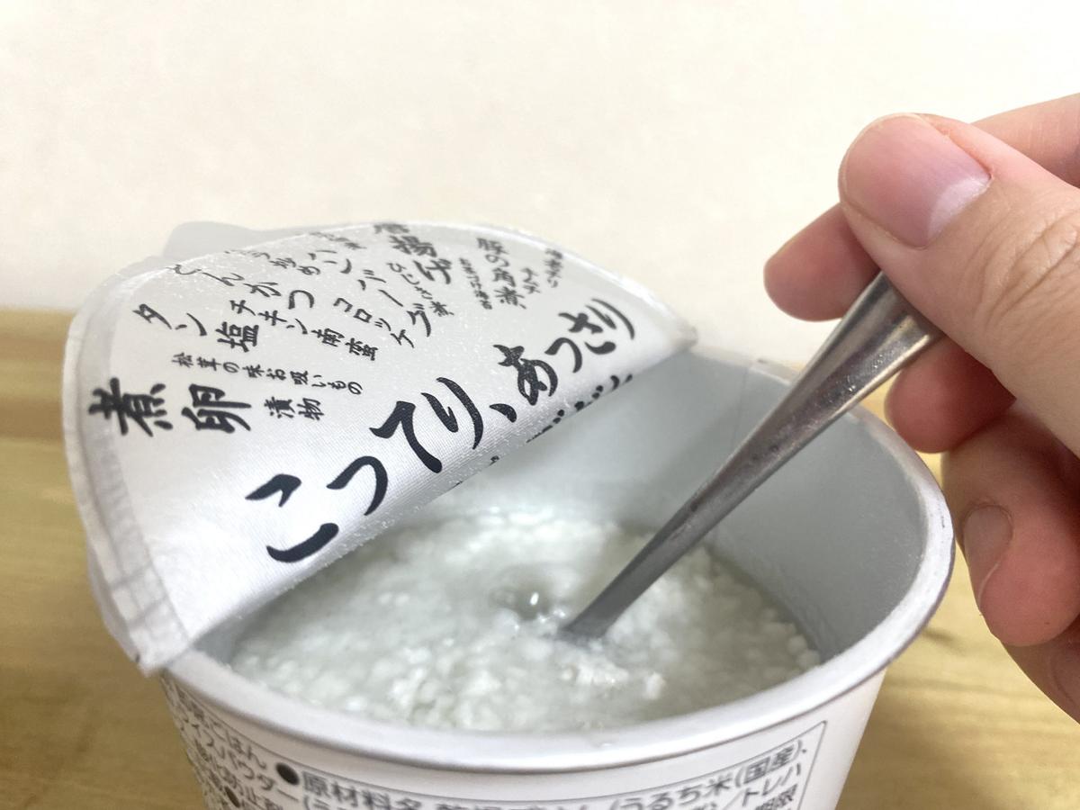 お湯を注いで5分待つだけで、お粥のようなとろっとした食感とお米の粒感がどちらも楽しめる一杯が完成します。