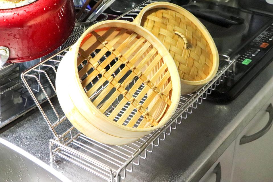 蒸し料理をするときは、蒸篭全体をサッと水で濡らします。これによって、せいろが焦げるのを防いでくれるのだそう。