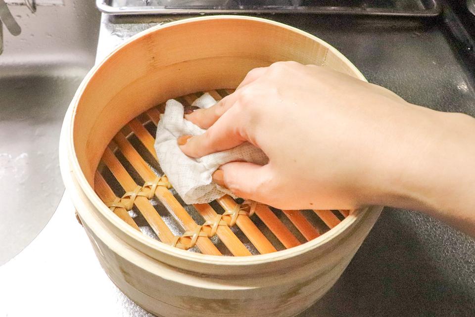 購入したら、まずは使用前のお手入れから。蒸篭は洗剤を使って洗えないので、汚れやニオイを取るために「空蒸し」をします。
