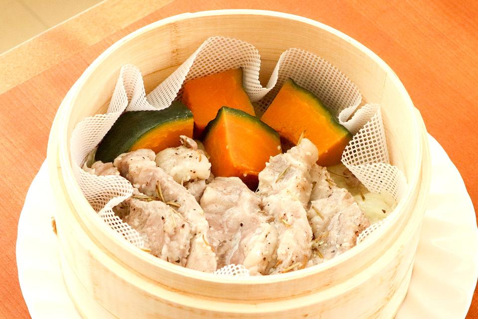 火加減が難しく固くなりがちな厚い豚肉も、蒸篭で蒸せばしっとりジューシーに仕上がります。