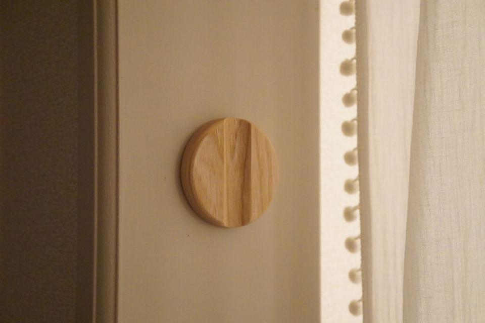 早速、お手洗いまでの動線にあるドアに「スマートセンサーライト」を設置してみました。明るさと灯りの広がり方は、手元足元がしっかり見える程度で、よい塩梅!