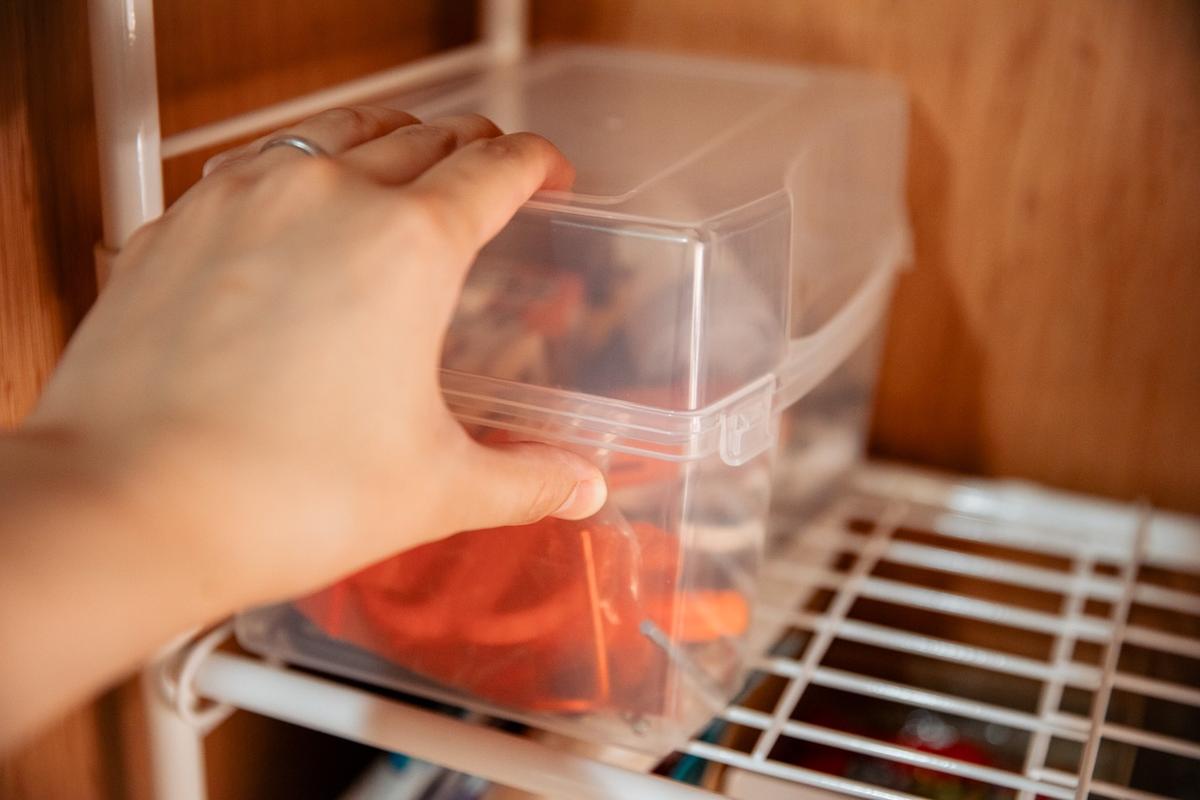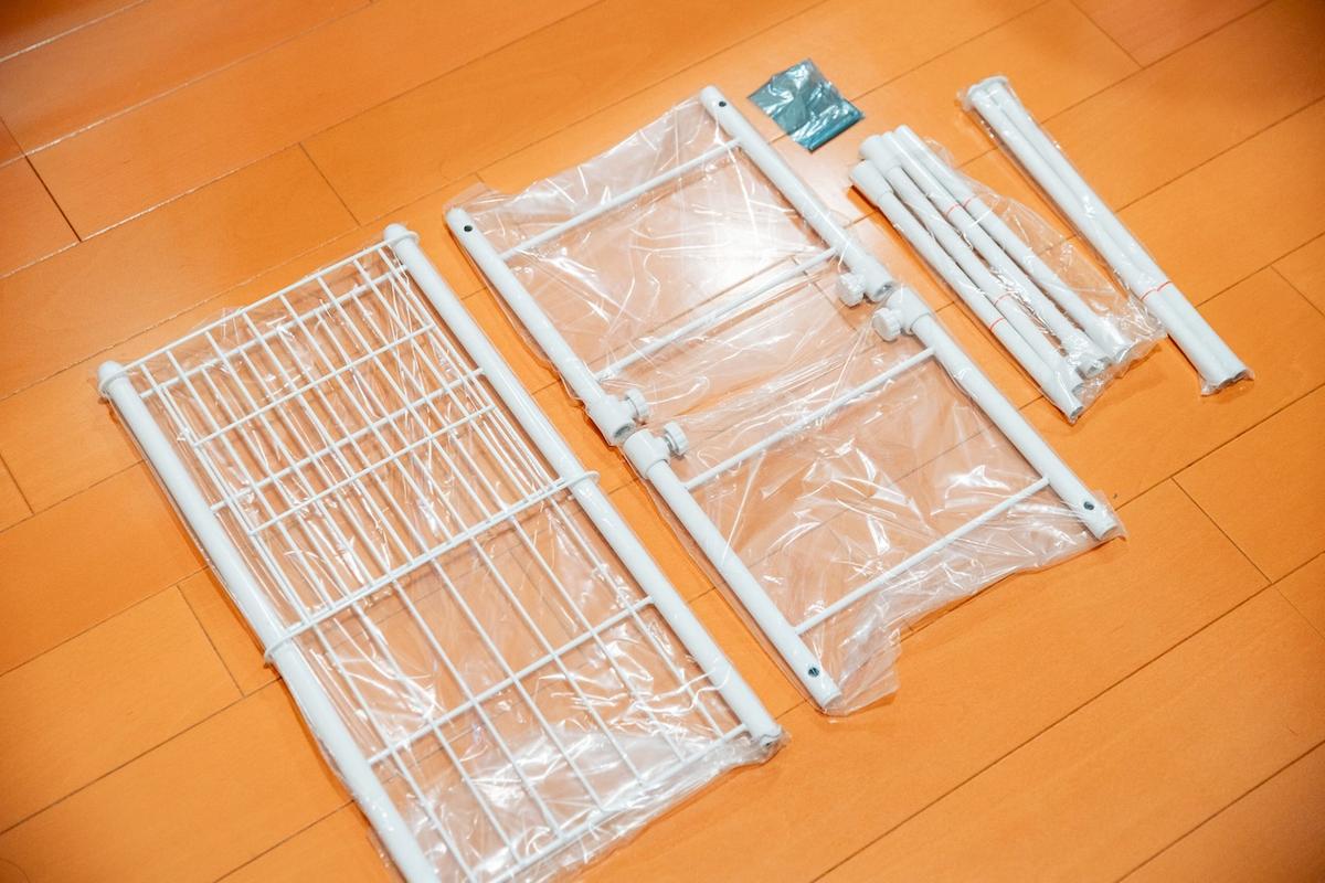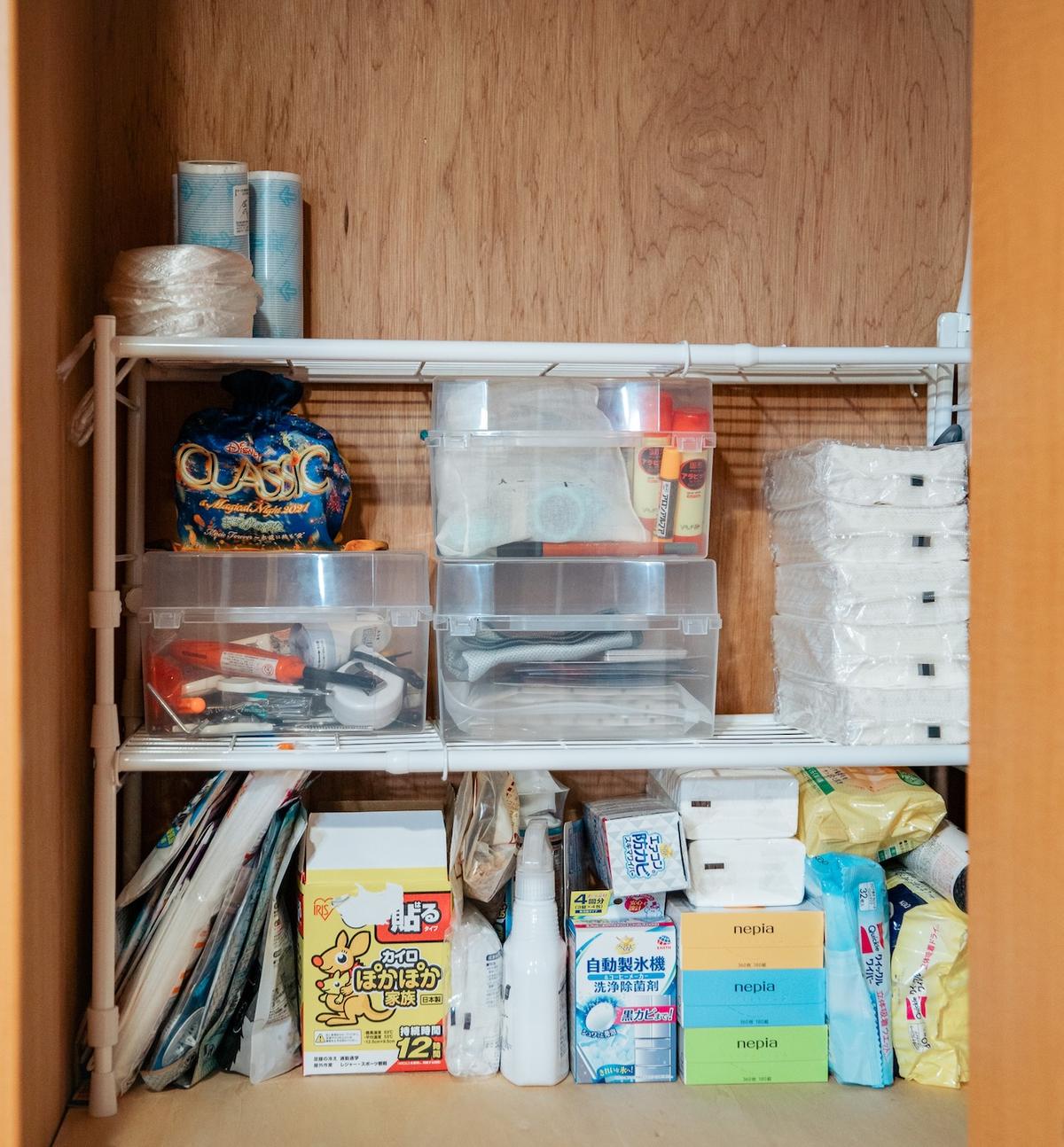 もうちょっと苦戦するかな?とも思っていたのですが、幅・高さを自在に調整できる収納棚だったからこそ、少しずつ調節できて助かりました。スタッキングできるのも便利!