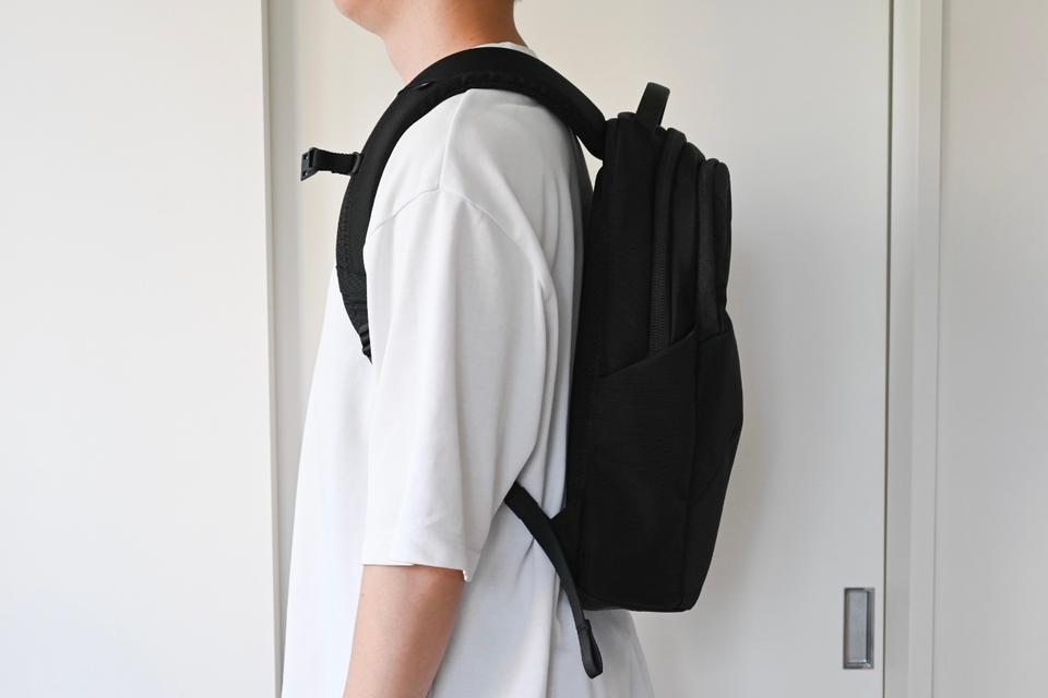 また、薄さはかなりスリムな一方、16インチのPCが入る幅はしっかりあるので、とにかく縦横のサイズが小さいバックパックが欲しい…という方は少し物足りなさを感じるかもしれません。