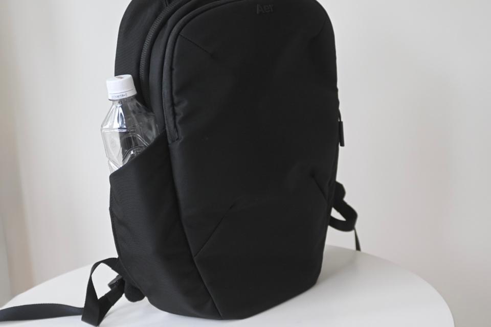 ほかの小型バックパックではボトルポケットのないものが多いなか、これは貴重な仕様です。取り出しもスムーズで、水滴が中身に触れないのも快適です。