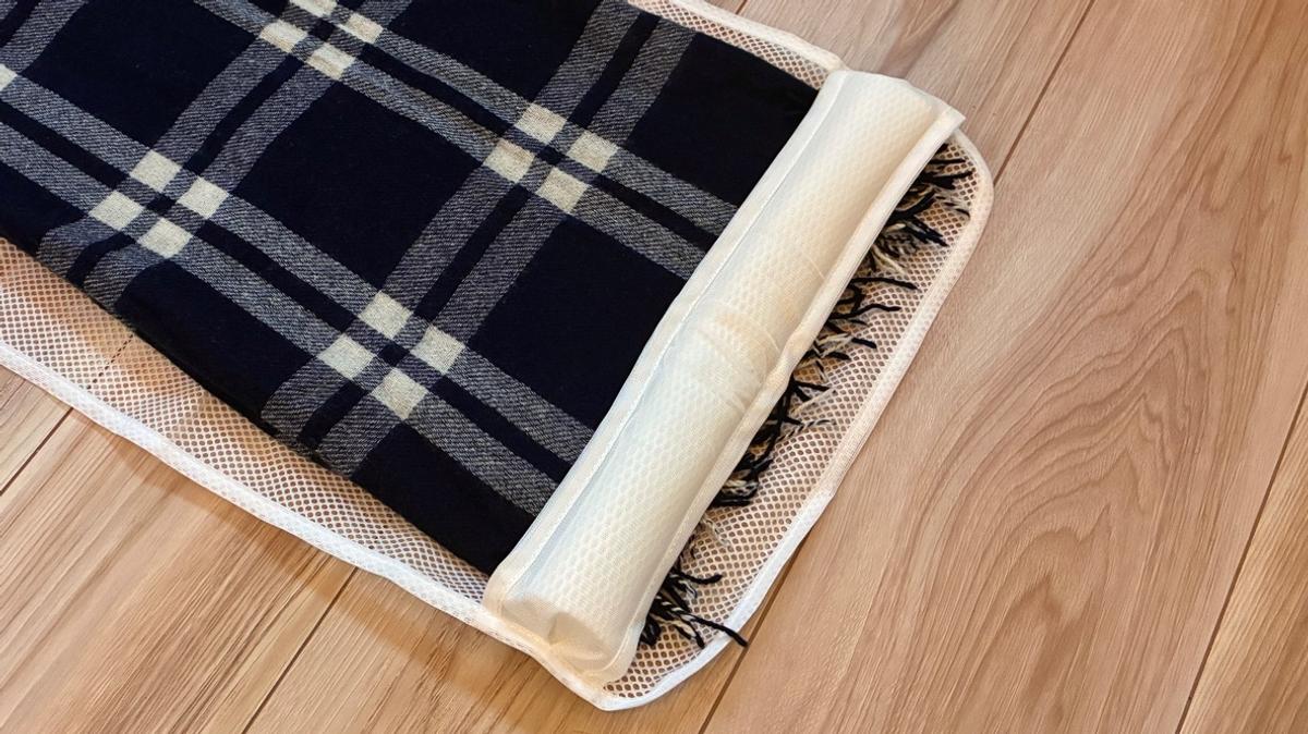 名前の通り、端のクッションポールに衣類を巻きつけてまとめることで、洗濯ネットの中で片寄らず、たたみジワや型崩れを防ぐ仕組みなんです。
