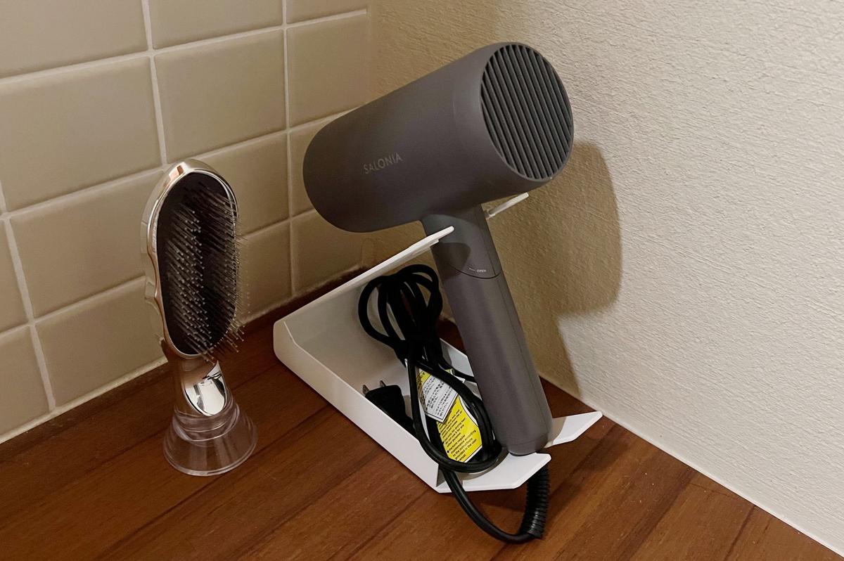 ちなみに、ドライヤーを上下2カ所のスタンドへ押し込められると正しく収納できているとのこと。