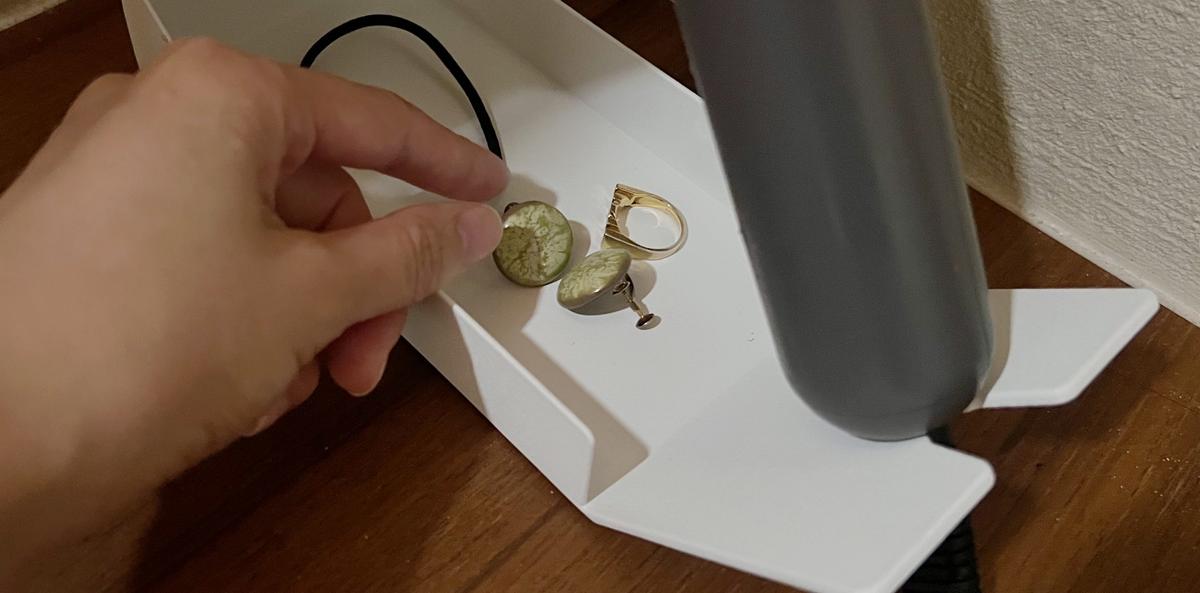 お風呂に入る前に、ヘアゴムやアクセサリーなど失くしがちな小物も一緒に置けるのもうれしいポイントでした。