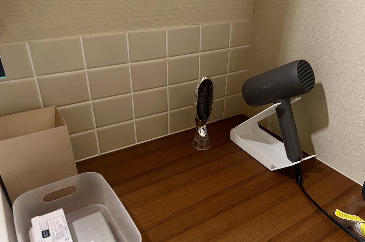 ドライヤースタンドを導入してからしばらく経過しましたが、洗面台の上のごちゃつきがかなり軽減されました。