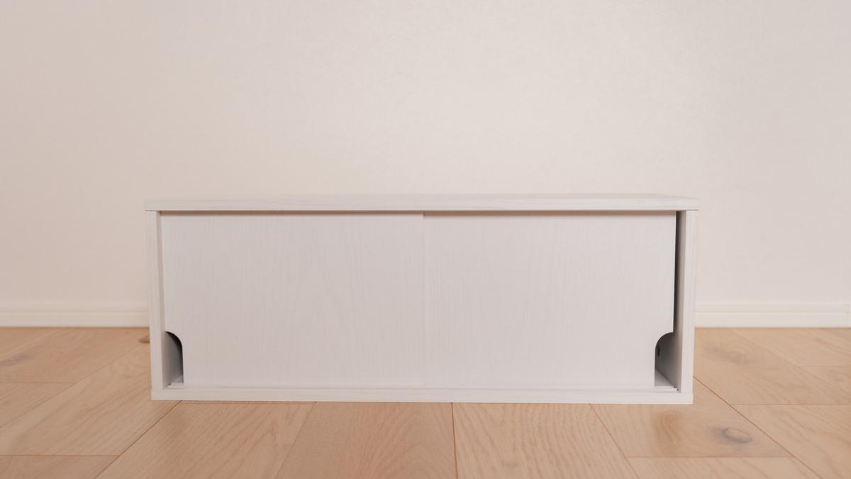 でもこの引き戸タイプなら、そんなごちゃつきも隠して収納できるんです。