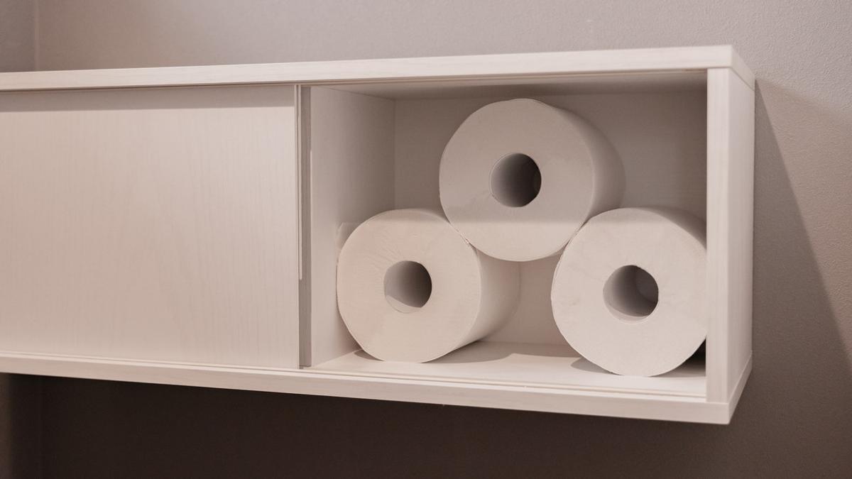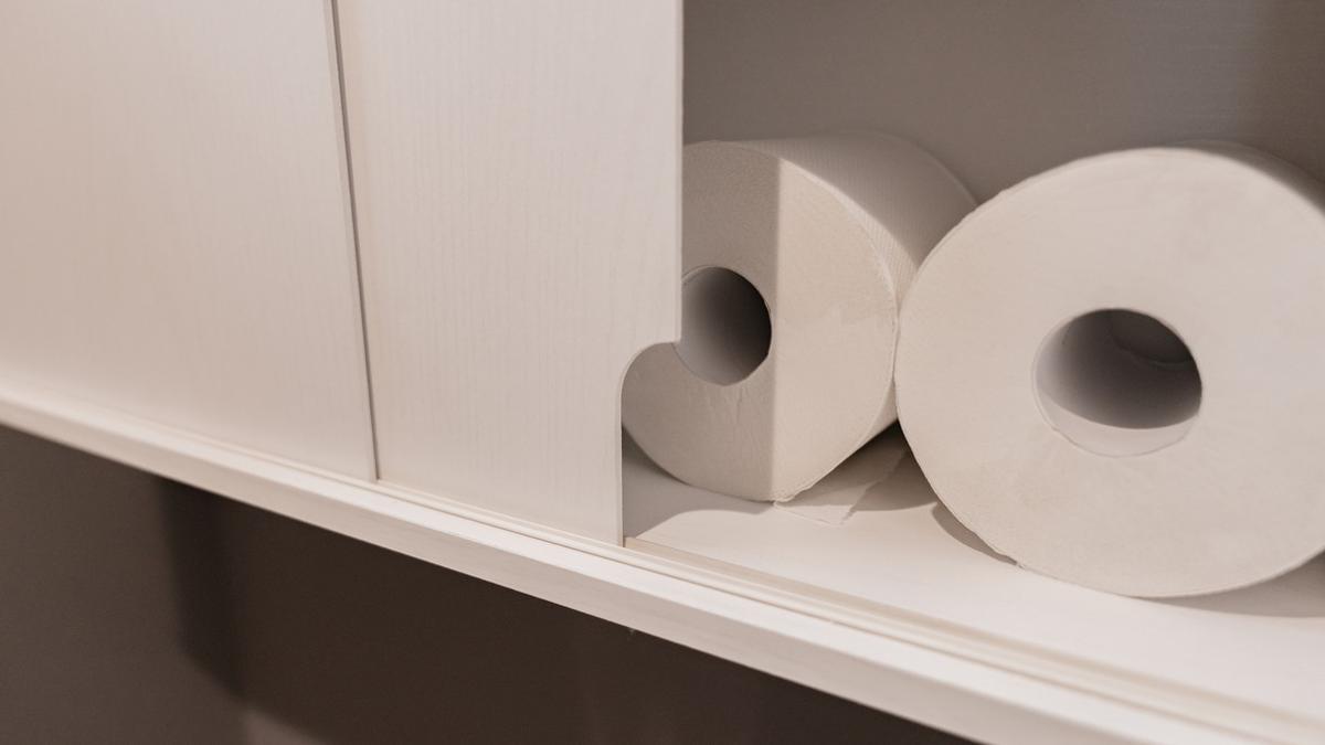 トイレットペーパーは横向きで最大3個収納できました。