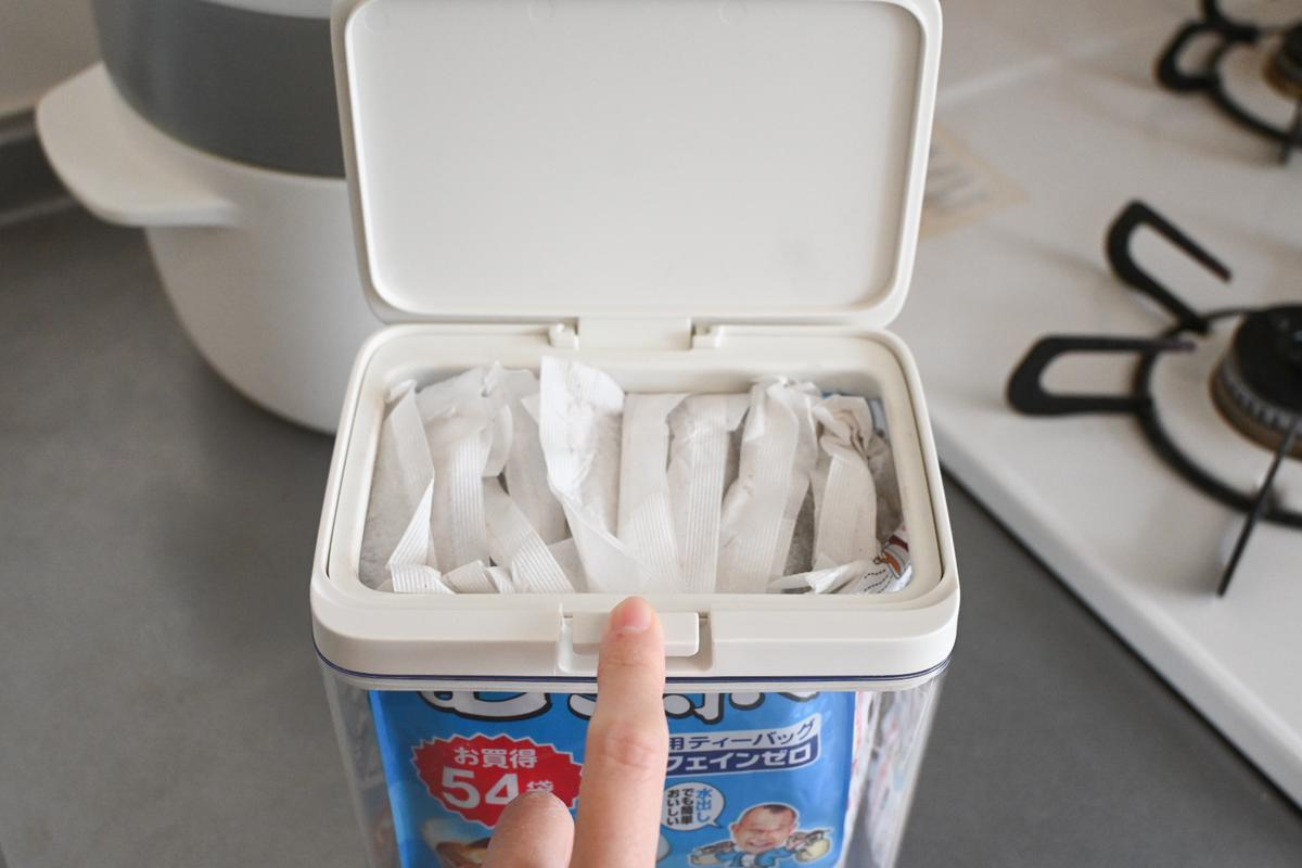 特に便利なのが、麦茶パックの保管。保存用のチャックがないものも多く、そのままだと保管に困りますよね……。