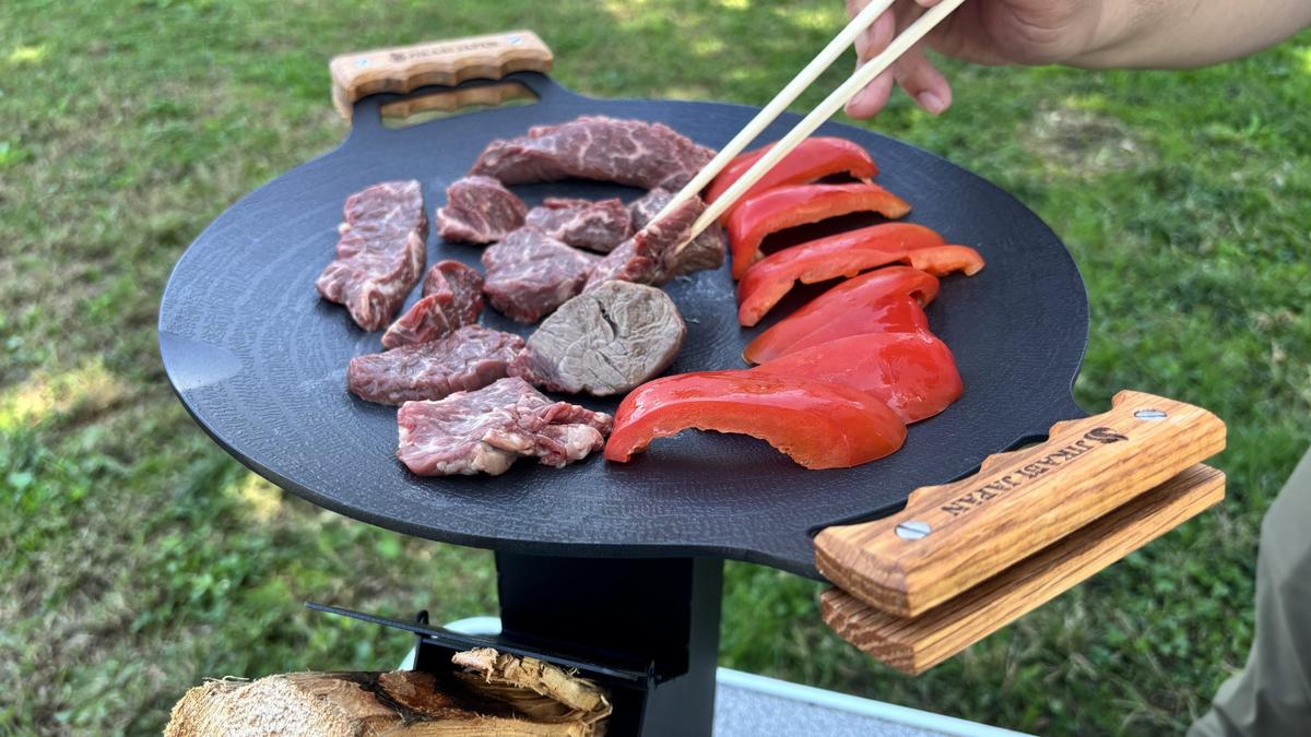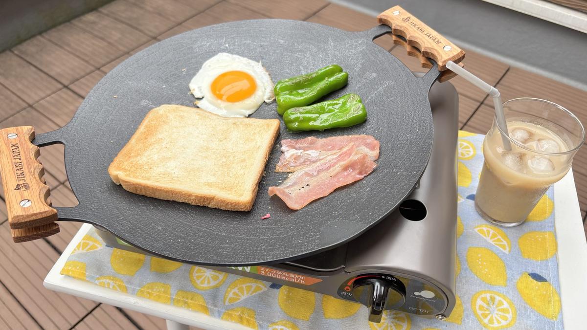 「庭先や近所の自然公園でのバーベキューでも使えるかも?」と思い、取り入れたのがキャンプギアの「鉄板」です。使ってみたらいろんな場面で活躍しています。