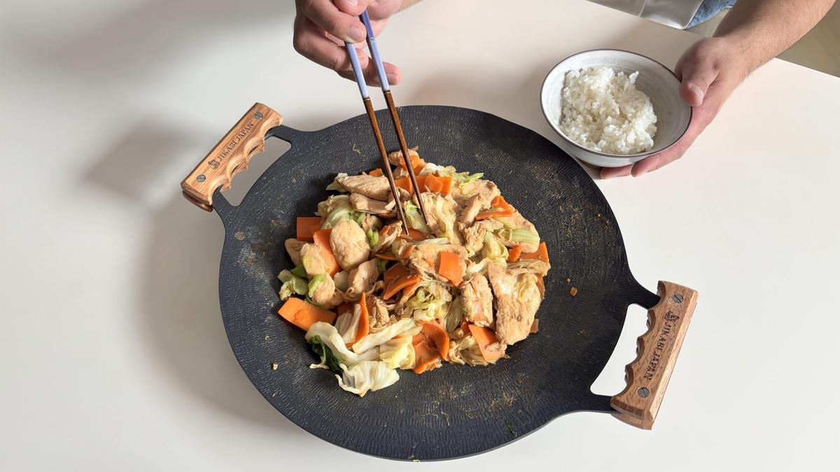 わが家でよく作る美濃の郷土料理「鶏ちゃん」は、味付け肉を使うため焦げつきやすいのが難点だったのですが、焦げつきとは無縁で調理できました。