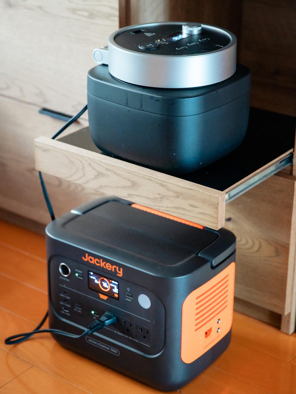 やっべ〜どうしよ〜〜!と思ったけれど、すかさずポータブル電源をキッチンへ。祈るように炊飯器へ繋いでみたら無事に電源が入り、美味しいご飯を炊けました!