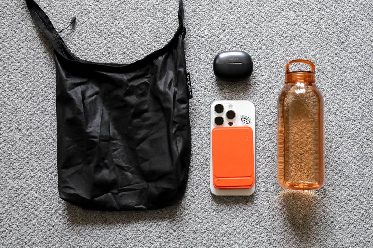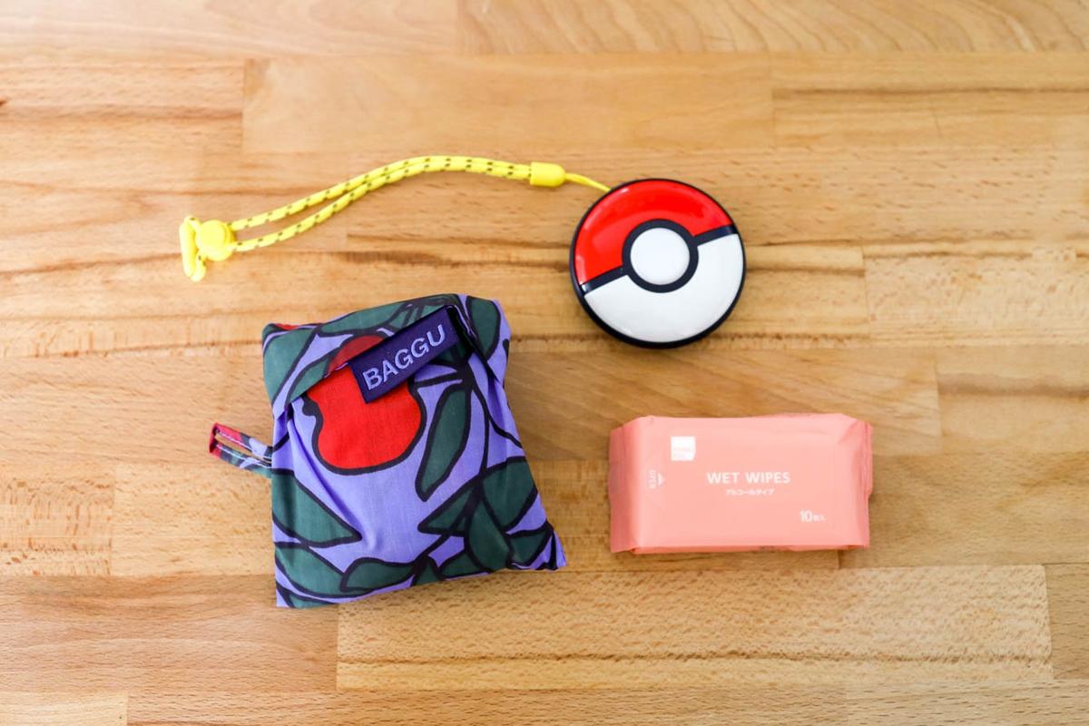 買い物に寄る日はエコバッグ、カフェに立ち寄りそうなときはウェットティッシュ、それからポケモンGO用の端末も……と日によって中身の変動はありつつも、基本的に上の4つはスタメンアイテム。