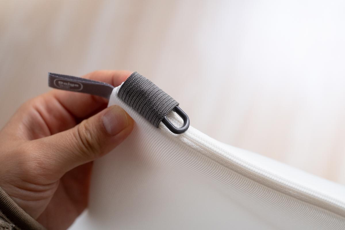 ファスナーはゴムのカバーの中にしまえるようになっているので、一緒に洗う別の服も痛めません。
