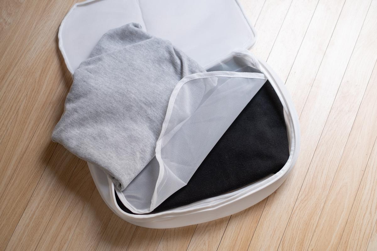 ペラペラの洗濯ネットだと中身が偏ってしまうことも多いけど、これは生地のおかげか畳まれた状態を維持しやすいので、シワや型崩れを起こしにくいと感じています。