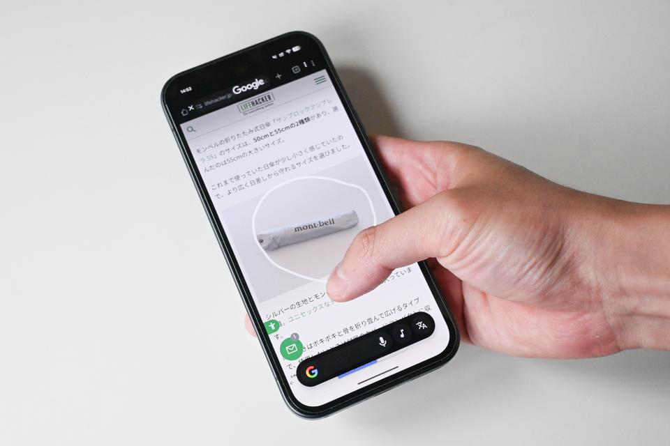 ここではGoogleのスマホでは有名な「かこって検索」をすることができ、調べたいものを指で囲うだけでGoogleレンズで検索ができます。
