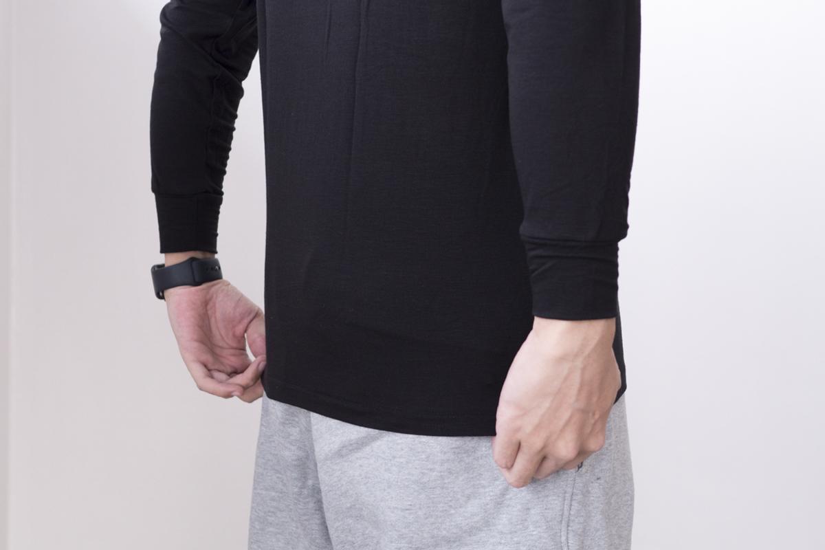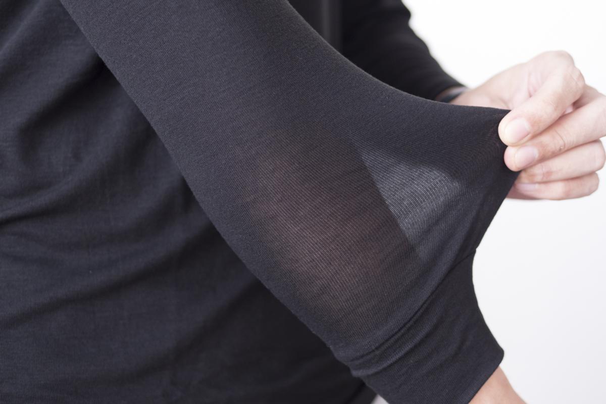 ヒートテックの極暖というと、厚手のものを思い浮かべる方が多いと思いますが、こちらは透け感のある薄手の生地。