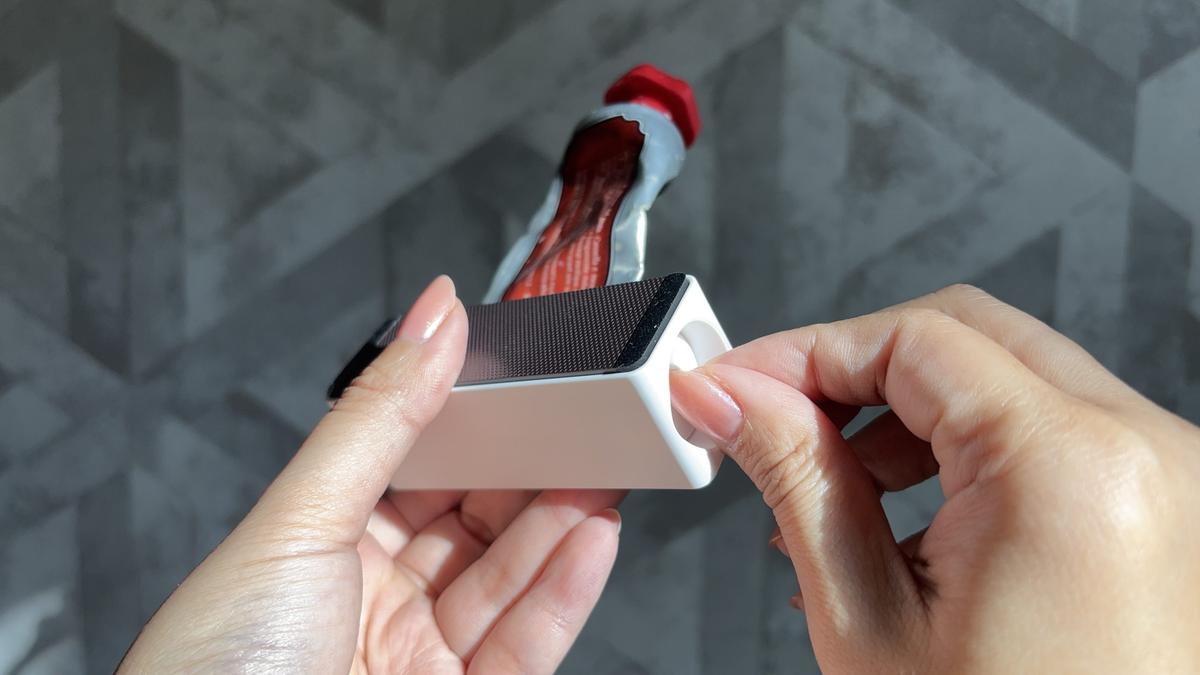 山崎実業の「歯磨き粉チューブホルダー」があれば、歯磨き粉を最後までしっかり使い切ることができます。しかも、簡単に!