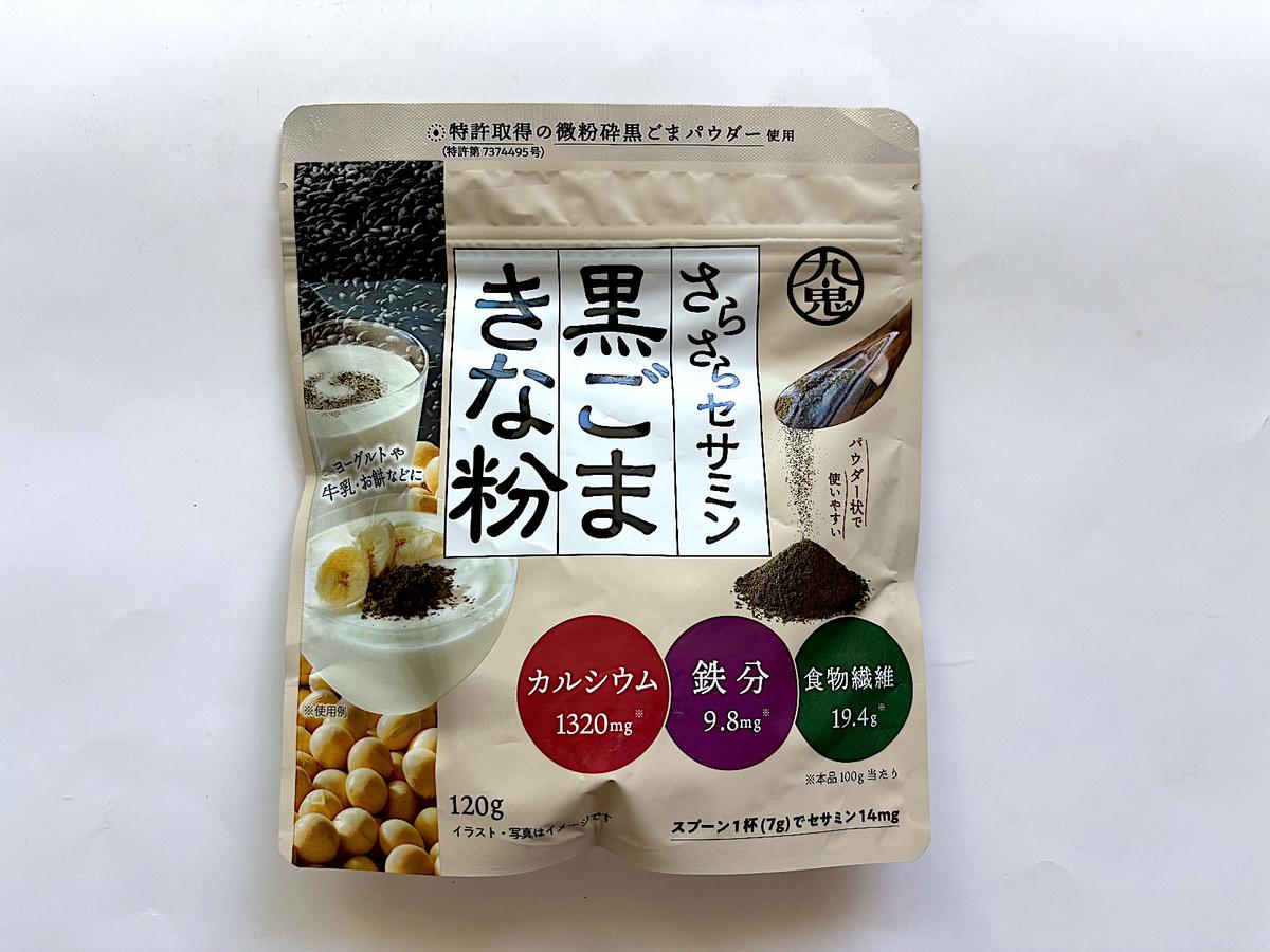 黒ごまラテ用のパウダー、または女性にうれしいイソフラボンやタンパク質も摂れる「きな粉」も摂れる九鬼の「黒ごまきな粉」パウダーもおすすめですよ。