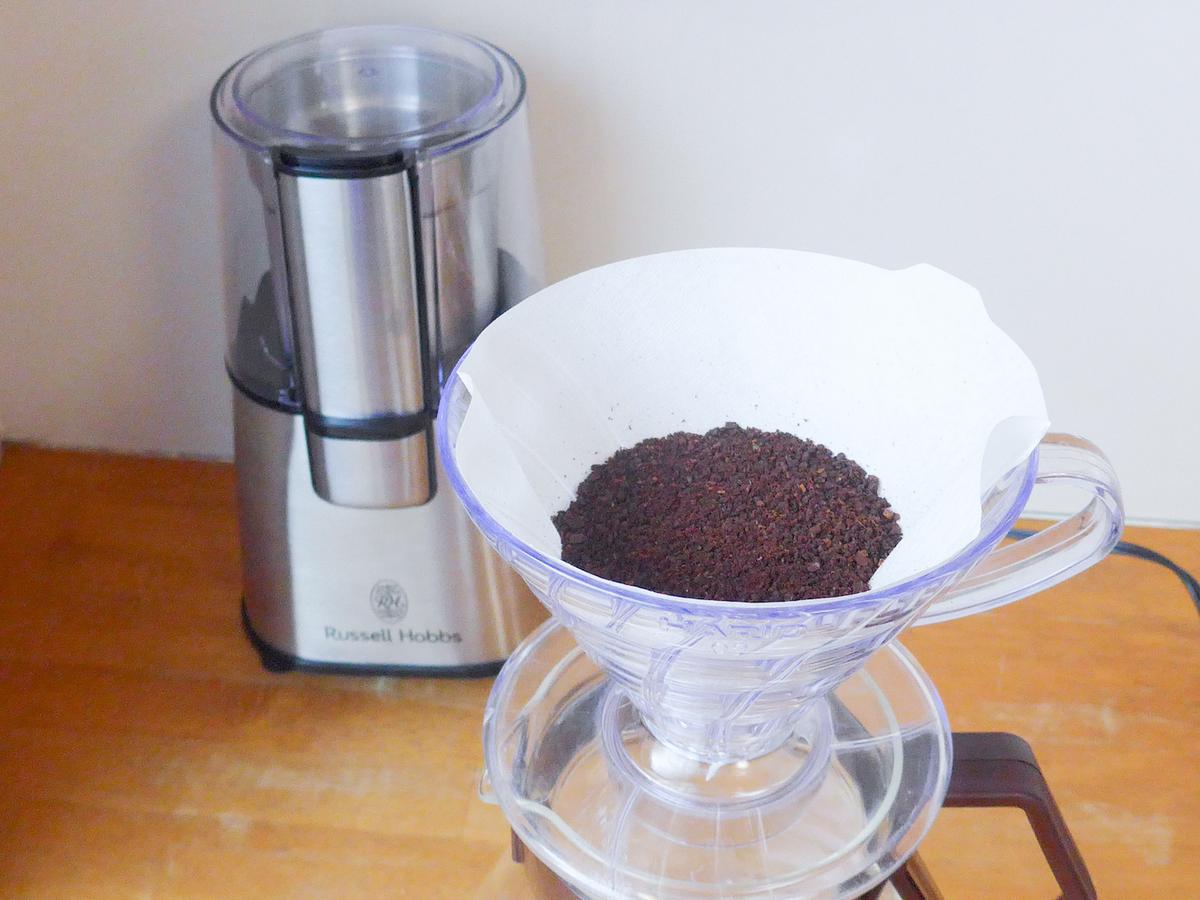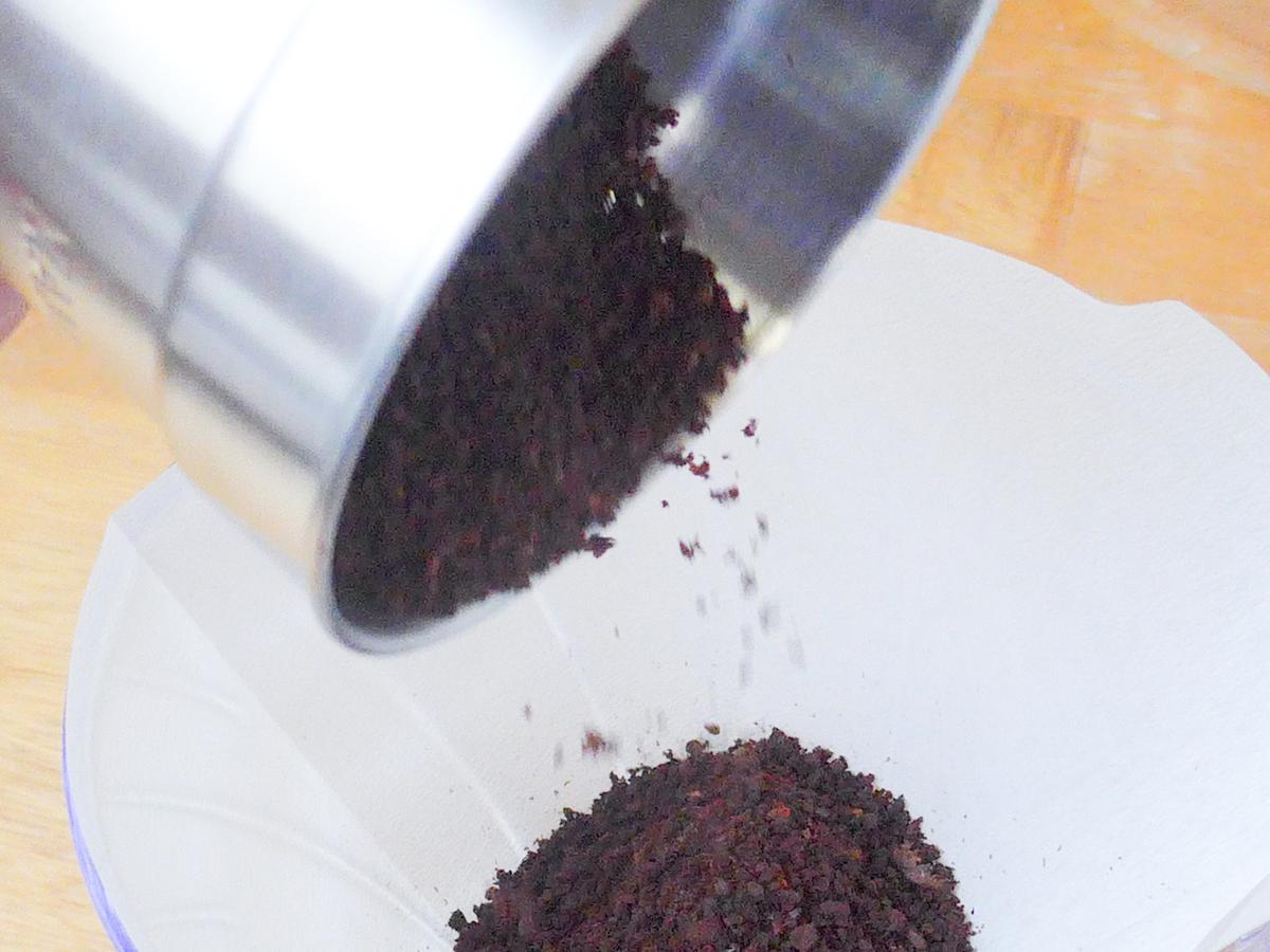 コーヒー豆はいつも粉で買っているのと同じものを用意して、ペーパーフィルター用の中挽きに挑戦してみました。