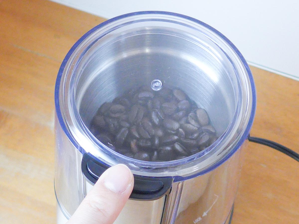 グラインディングボウルにコーヒー豆を30gほど入れ、スイッチを押すだけ。