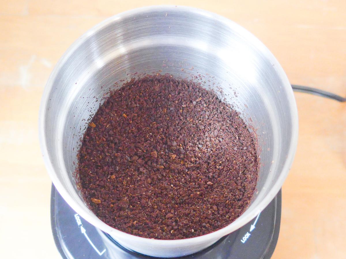 見つけたら本体を軽く振り、さらに2〜3秒追加すれば均一に挽けました。