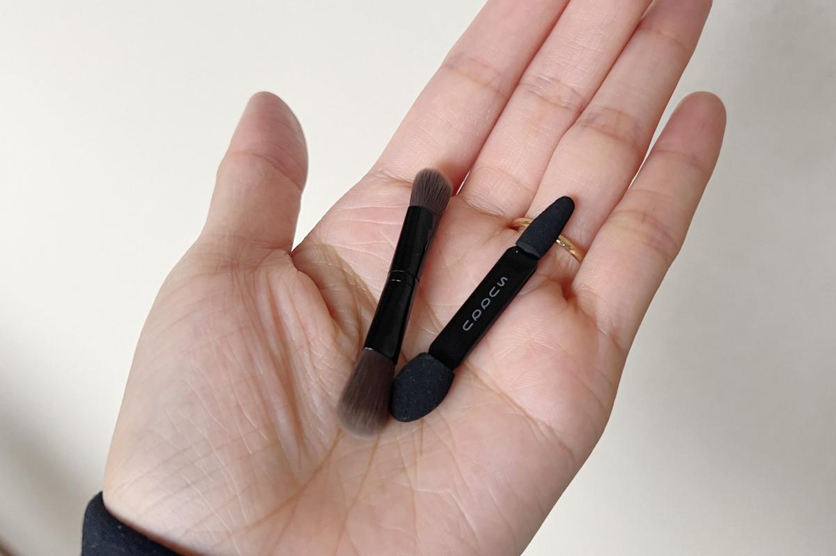 大きな鏡が付属しているので別で鏡を持ち歩く必要がなく、出先でメイク直しをするのにピッタリなんですよね。