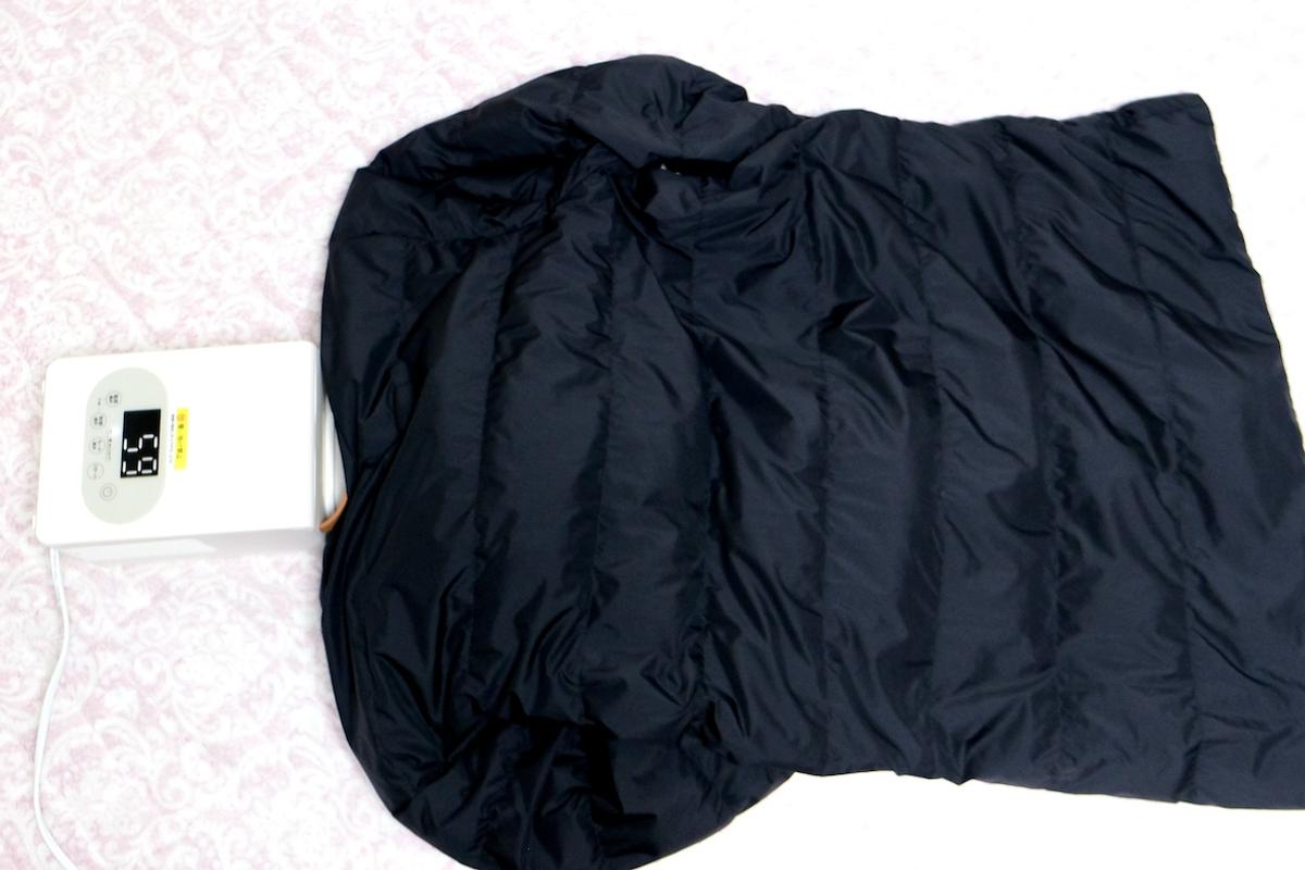 布団乾燥機を40度に設定して、60分間コートの中に風を送ってみると、ふっくらと元通りに。