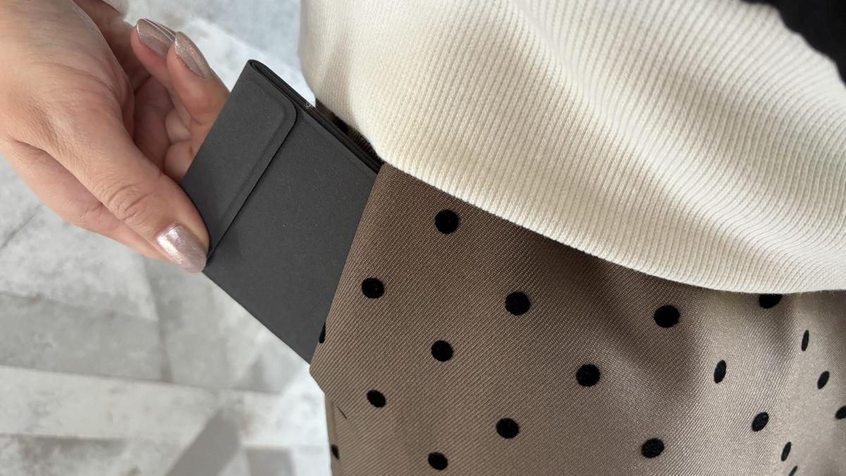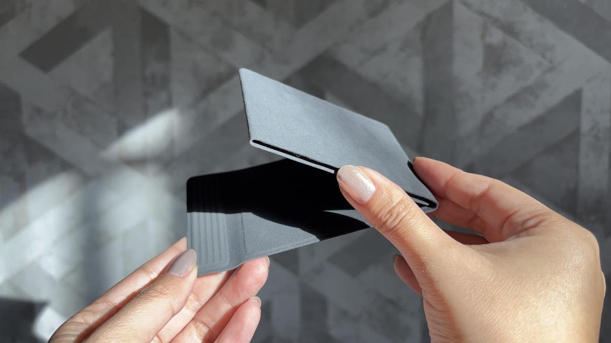 畳んだ状態の本体の大きさは幅約7.2cm×高さ9.3cm×奥行き0.8cmと、とてもコンパクト。そして、びっくりするくらい小さいし薄いです。