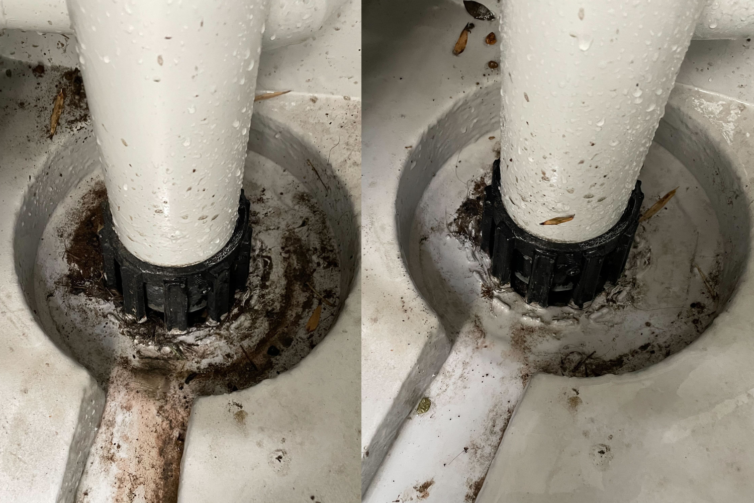 特に汚れが気になっていたのはベランダの排水溝。ベランダ菜園の土埃や落ち葉などが溜まってしまっていたんです。