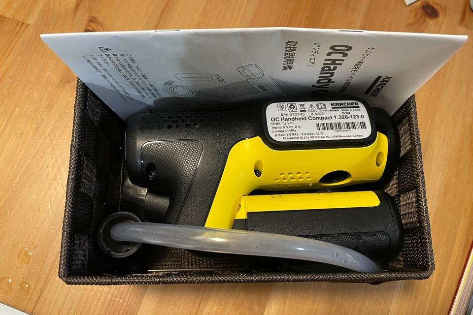 このサイズ感かつ、電源・水源不要で使えることから「狭い我が家にも使えるケルヒャーがついに登場したぞ」とワクワク。