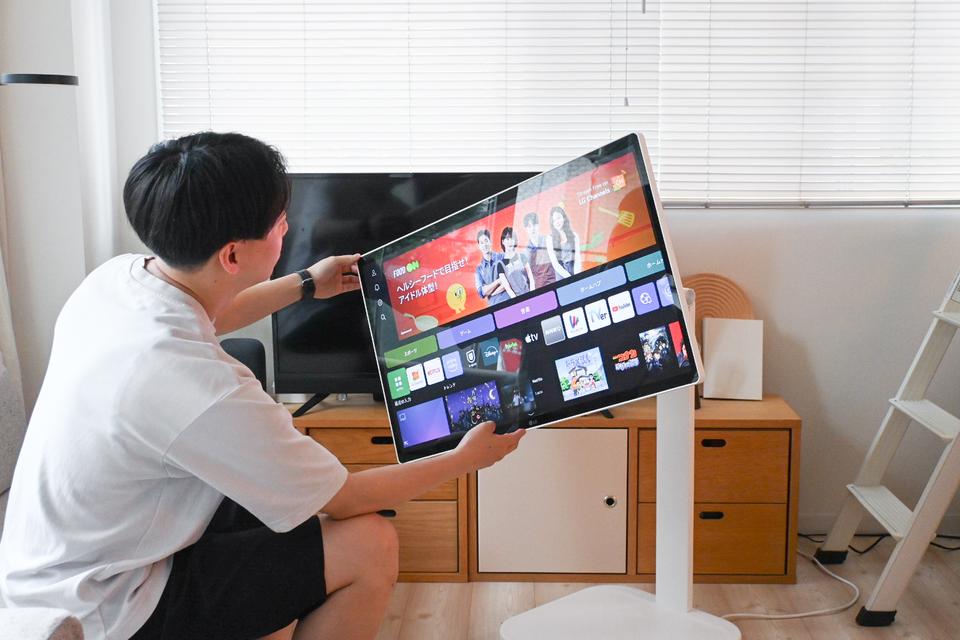 そんなときにぴったりだったのが、LGの「Smart Monitor Swing。キャスター付きで家中をどこでも移動でき、エンタメにも対応できる、まるで動かせるテレビのような1台でした。