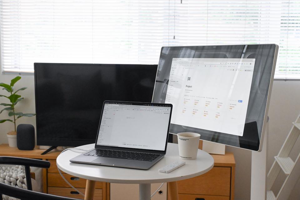 動かせるモニターがあれば、ダイニングテーブルやソファなど、好きなところにモニターを移動して作業することができます。