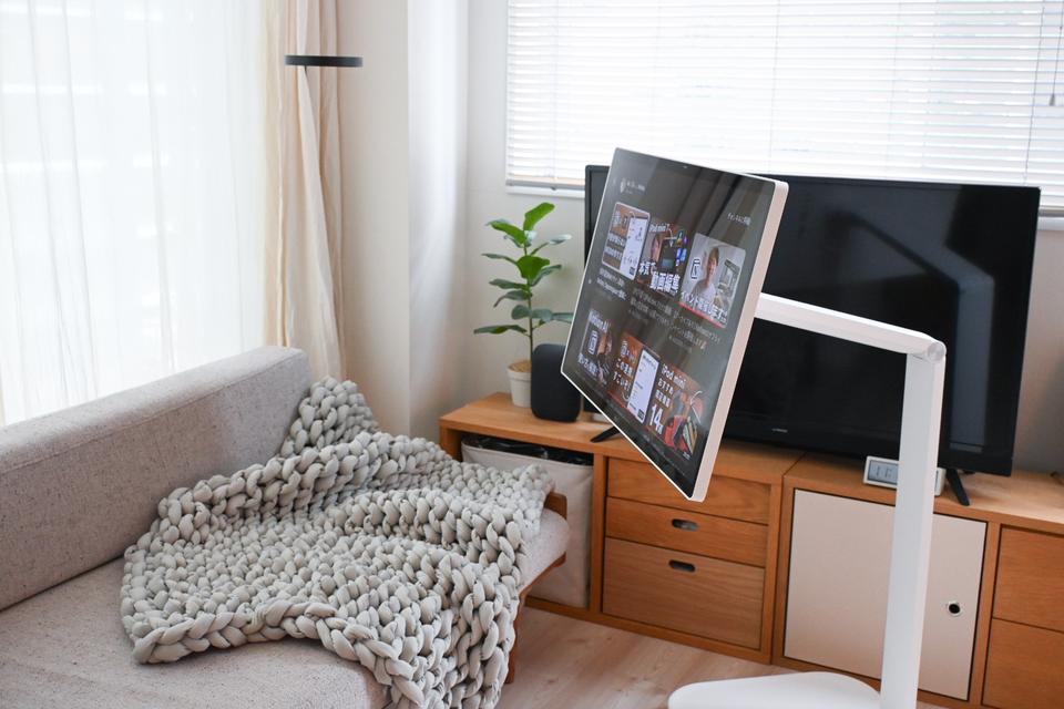 何より移動できるのが便利で、たとえばダイニングでごはんを食べながらYouTubeを見て、食後はソファ前に移動させてゆっくり映画鑑賞……といった使い方も可能。