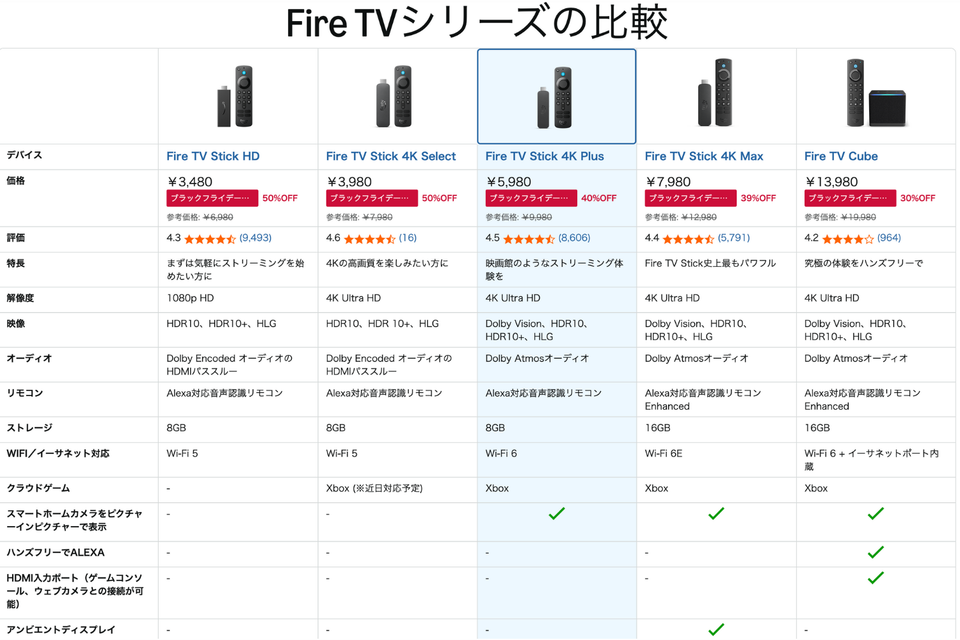 今回のセールでももちろん注目すべきは、Amazonデバイス。特に人気のFire TV Stickシリーは最大40%オフと、思わず二度見するほど破格に。