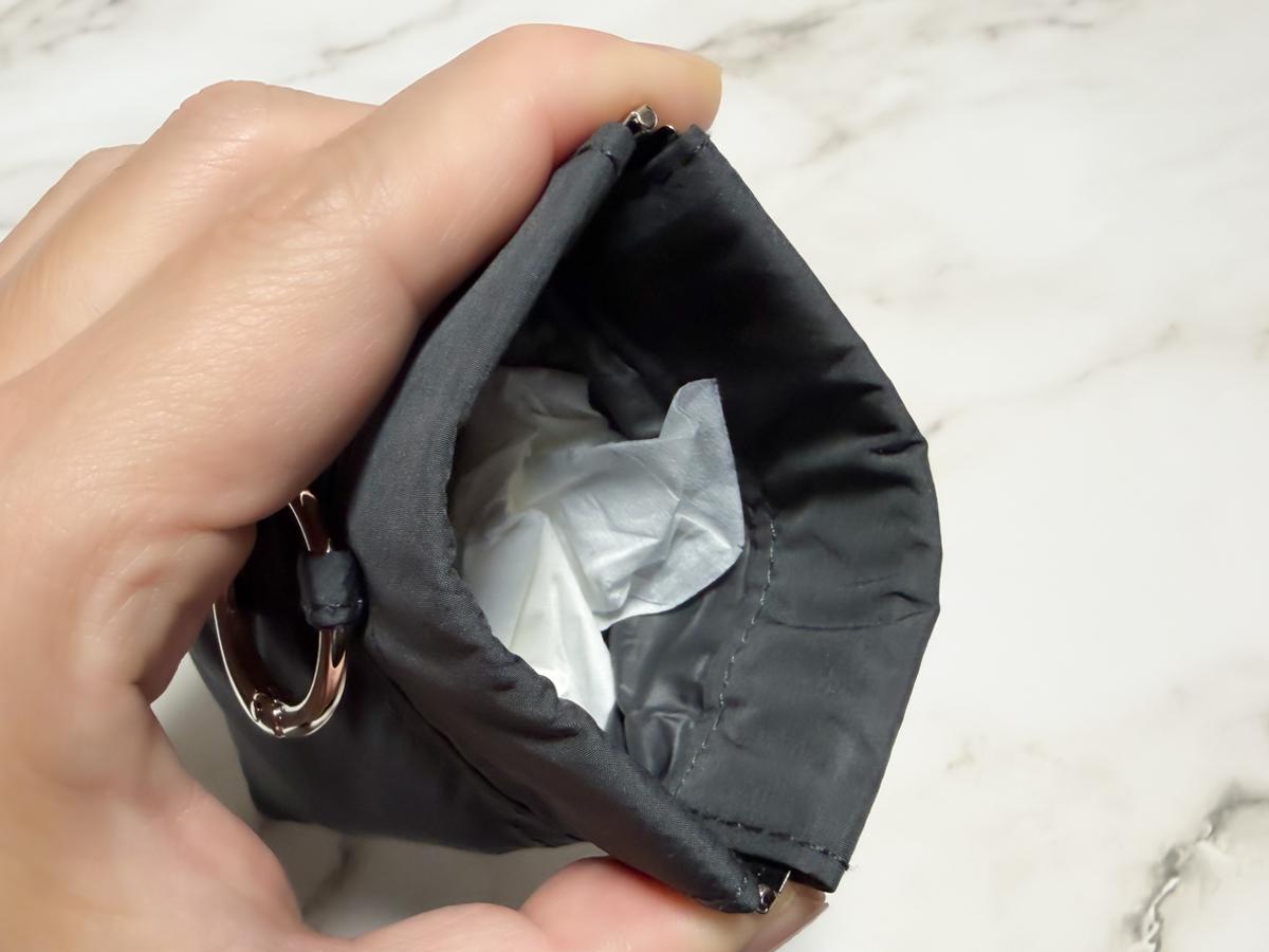 収納力も充分で、ポケットティッシュ1袋くらいなら余裕で入りました。