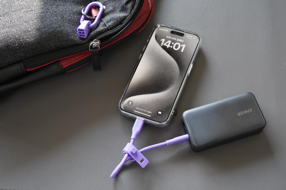 休日用・仕事用と、それぞれのバッグにUSB-Cケーブルが入っていますが、気がつくとバッグの中で絡んでいたり、一緒にほかのモノまで引きずり出されたり……。使うたびに若干のストレスを感じていました。