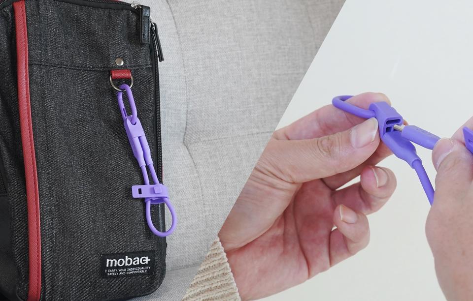 そしてバッグに装着しておくことで、ケーブル忘れも防げますし、ケーブルを「バッグの外」に出せたことで、ケーブルが絡むことがなくなり、ケーブルを取り出す・しまうといった手間もケアできているのが実に効率的。