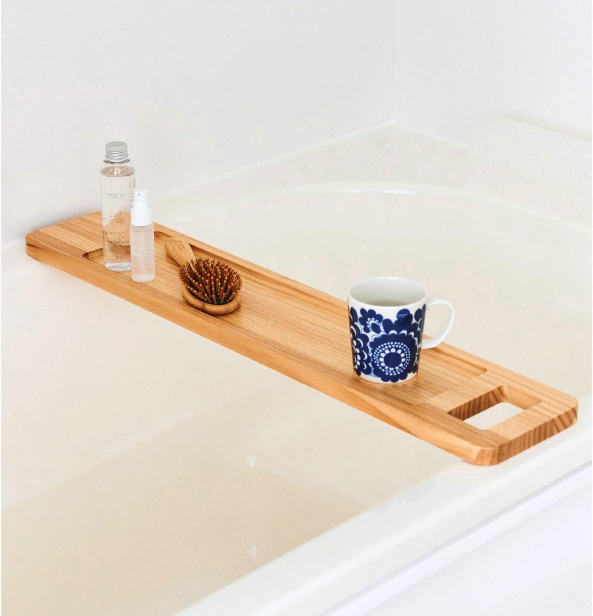じっくり半身浴を楽しむなら、お風呂のフチにのせる「バスタブトレー/いい風呂の日」も取り入れたいアイテム。